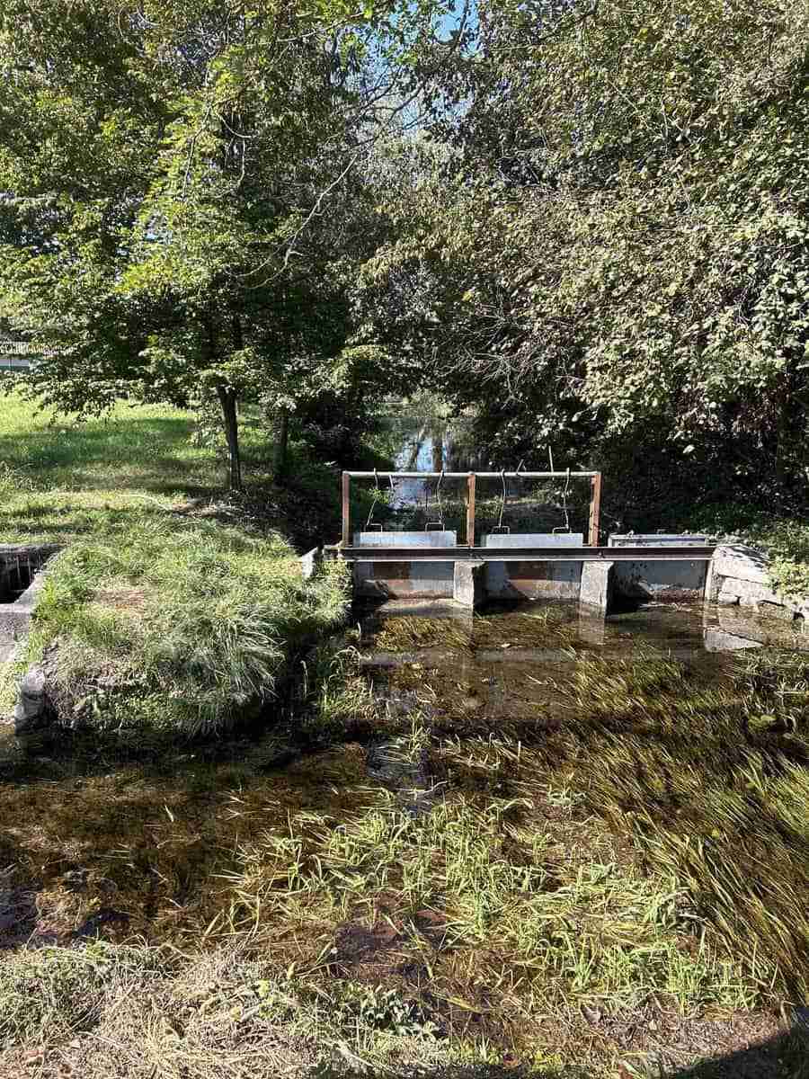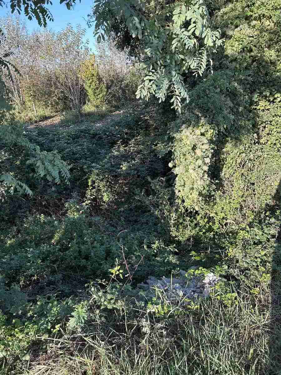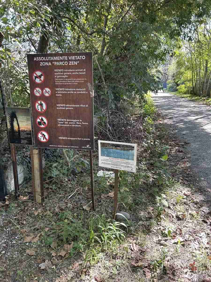 Proseguendo lungo la Via Riserva, costeggiamo i muri perimetrali del Parco del Castello sul lato sinistro, mentre sul lato destro della strada, seminascosto dalla vegetazione si trova il “Fosso Bergamasco”.