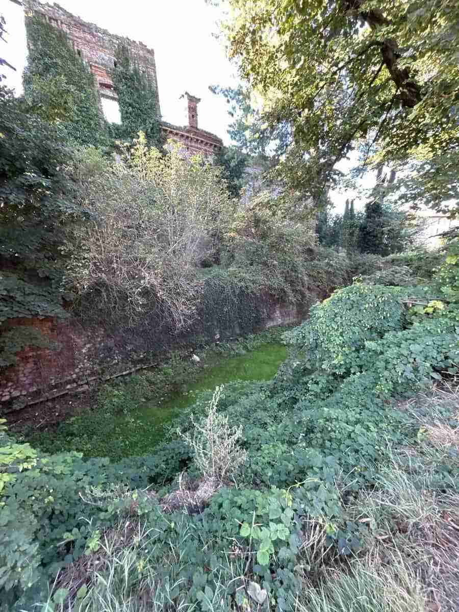 Da un rapido confronto con la galleria precedente e dalle fotografie satellitari di Google Heart 2023 – 2024 si può facilmente capire quanto sia stato rapido il deterioramento strutturale dell’intero complesso, nell’arco di circa quindici anni d’abbandono. Commenti in merito? Inutile farne, è evidente che la proprietà privata ha altri piani ben differenti da un recupero storico, anzi l’azione demolitrice del tempo rimuoverebbe quei vincoli residui esistenti su questo edificio, spianando la strada a lottizzazioni più remunerative.