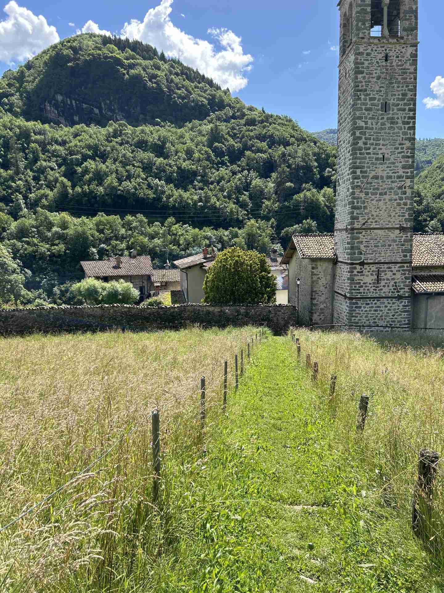 Partendo da Cornello dei Tasso e passando sul retro della chiesa, si esce dalla cinta muraria che racchiude il borgo. Si prosegue quindi lungo un sentiero che attraversa i campi e si inerpica lungo il monte, fino a raggiungere l’antica mulattiera di collegamento con Bretto.
