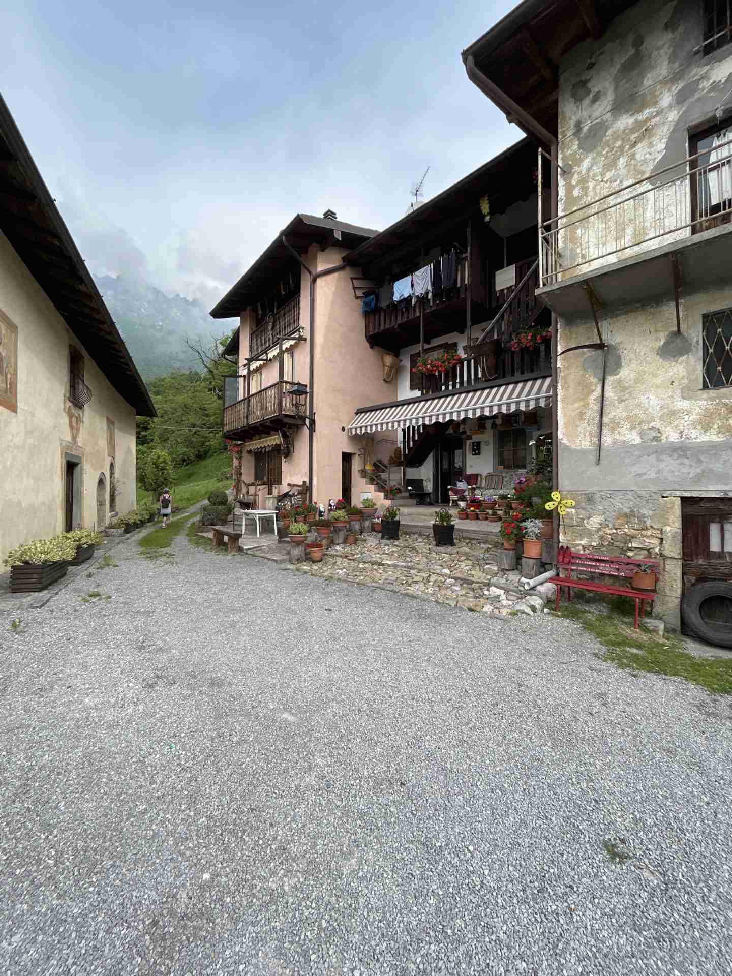 Sul lato opposto della piazzetta, si trova un lungo edificio che originariamente doveva essere una pertinenza del palazzo. Qui, nel nucleo centrale ricco di fiori, risiede una delle due famiglie che ancora abitano stabilmente nella contrada.