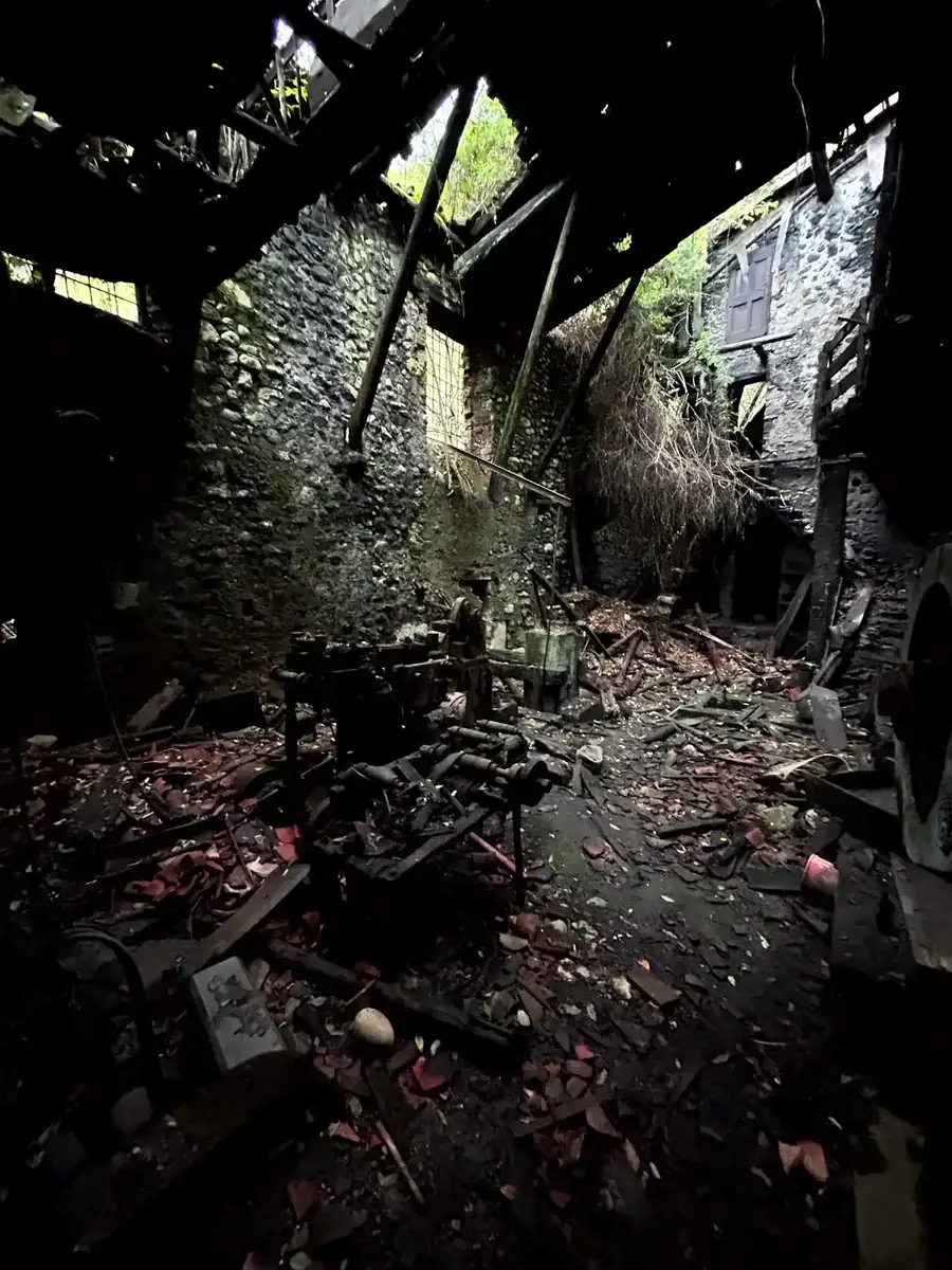 Nella galleria fotografica precedente, partendo dall’alto in senso orario: 1 Interno Abitazione locale cucina presso Fucina con Maglio Clanezzo, 2 Dettaglio Interno Cucina, 3 Facciata Principale della Fucina Con Maglio, 4 Interno Fucina vandalizzata e in rovina con resti di una Mola, 5 Interno Fucina con Resti vandalizzati del Maglio.
