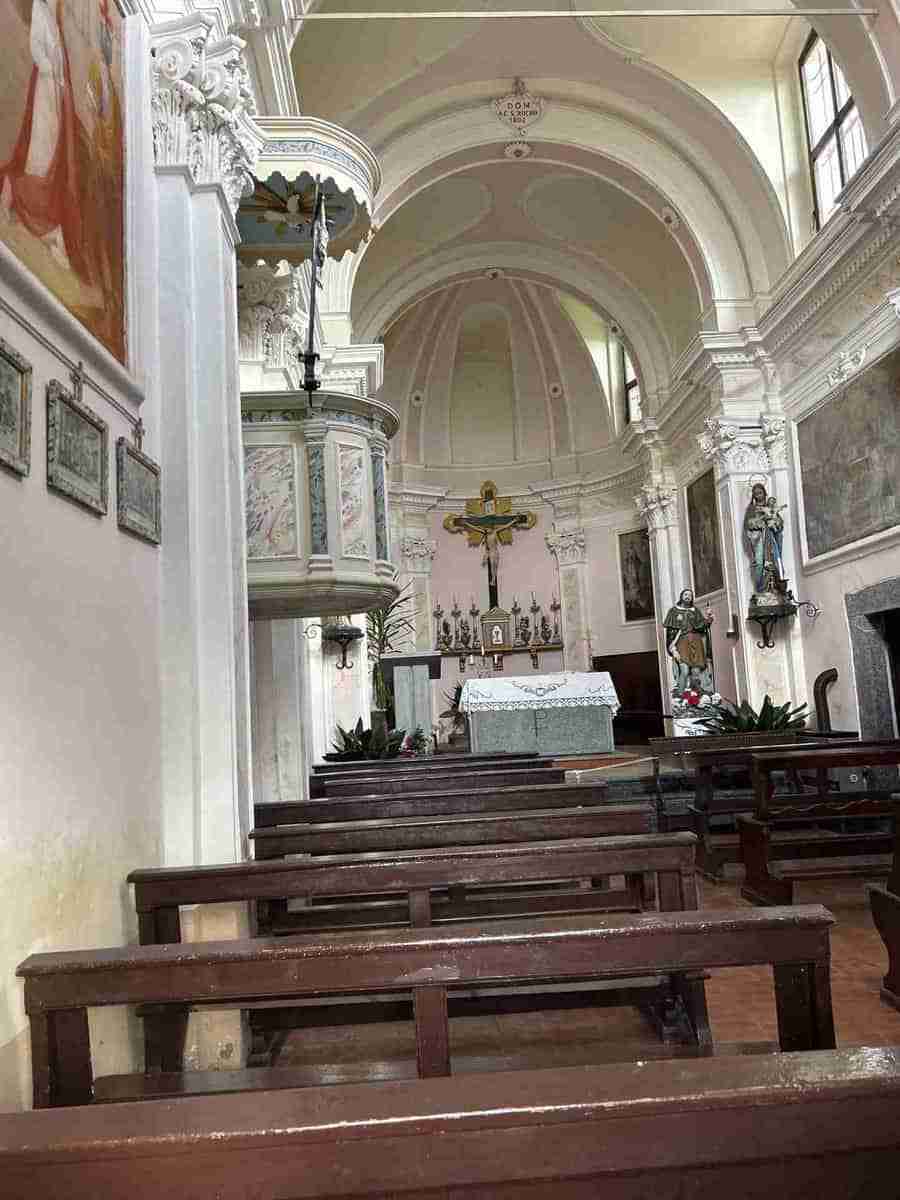 La data di edificazione della attuale chiesa risale all’anno 1804, mentre i lavori per l’aggiunta dei porticati e altre opere di restauro sono state effettuate intorno all’anno 1880. La Chiesa é adornata da diverse opere pittoriche, tra cui la Pala d’altare con San Rocco e i Santi realizzata dal Ceresa, attualmente custodita nella Parrocchiale di San Pietro d’Orzio.