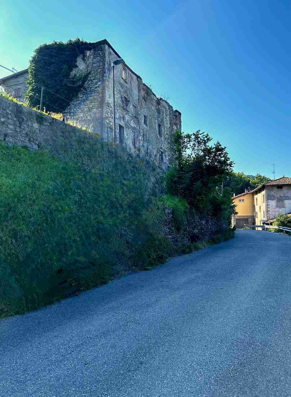 Sulla parte sinistra, invece, incombono i resti di quello che doveva essere un grande casale, strutturato su quattro livelli, completamente privo del tetto e con diversi muri perimetrali in rovina e inghiottiti dalla vegetazione. Non ci sono ulteriori elementi che approfondiscano la storia di questa piccola borgata, né ho avuto modo d’incontrare persone che ne sapessero in merito.