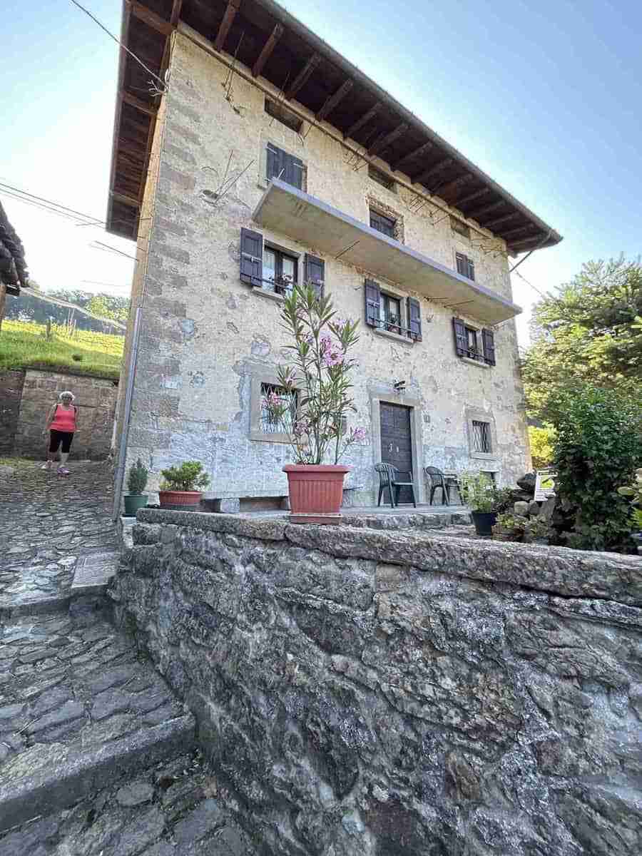 Presumibilmente svolgeva anche funzioni ricettive, vista la dimensione e basandoci sull’architettura dovrebbe risalire alla fine dell’ottocento inizio novecento. La parte esteticamente meno bella è quella esposta a valle, dove sulla facciata principale svettano ben tre latrine esterne sovrapposte, esempio architettonico ardito, realizzato in anni successivi alla costruzione dell’immobile.